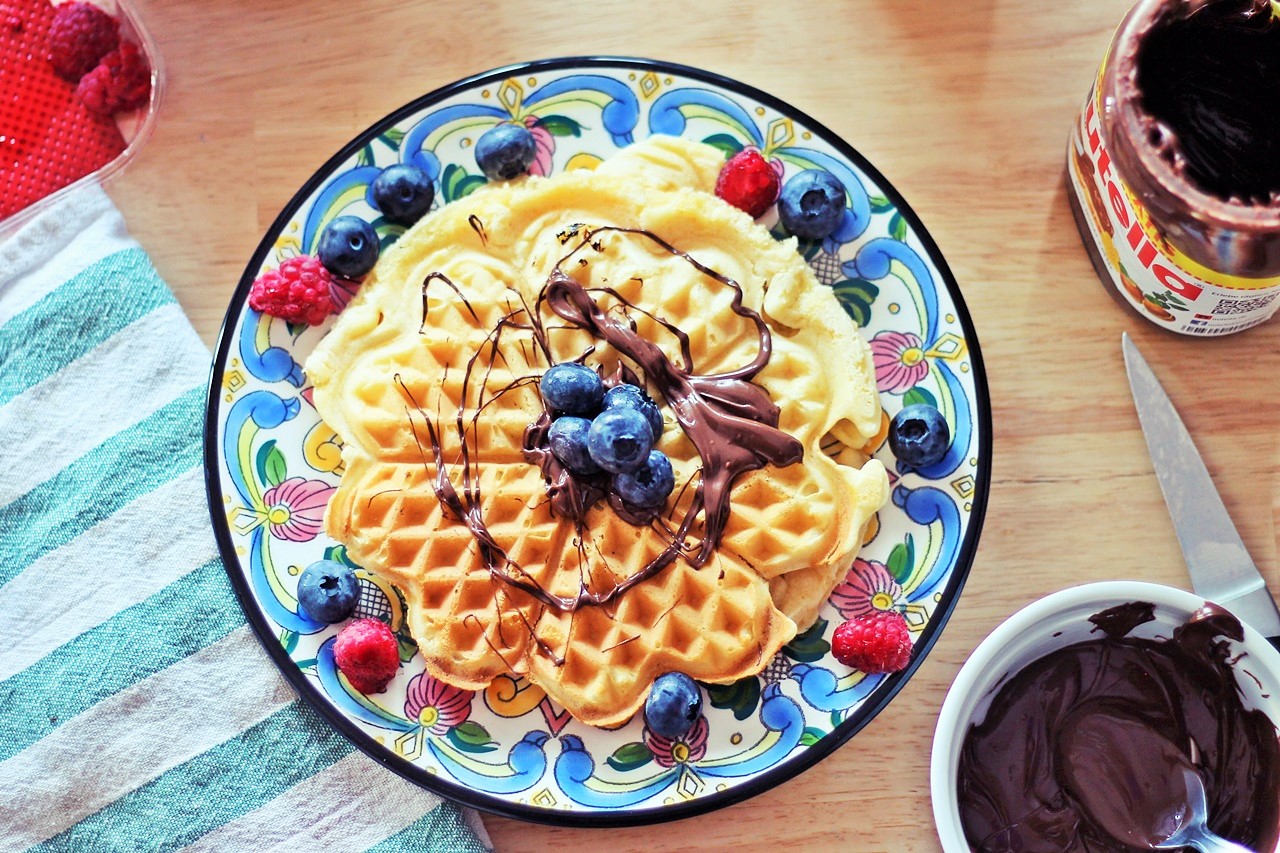 Ovo je dobar recept i za klasicne američke palačinke ako nemate pekač za waffle. Kao sto sam napisala u prethodnom postu, s čime cete ih posluziti je samo na vama. Ja sam u ovom slucaju uzela nutelu i voce.