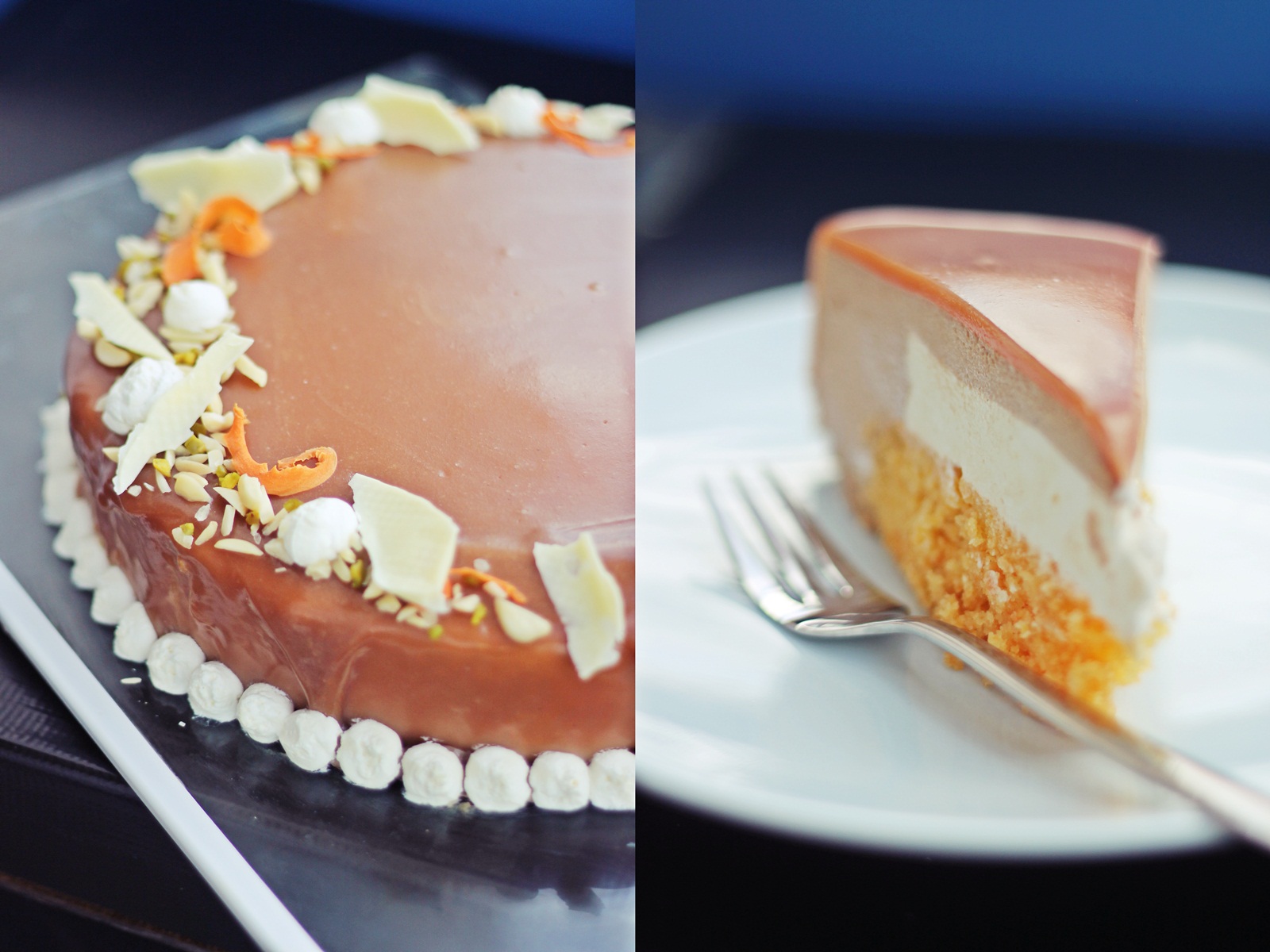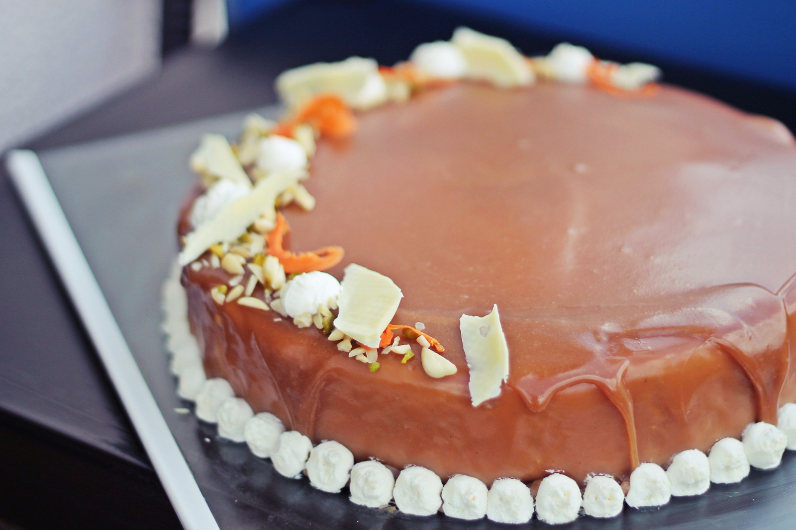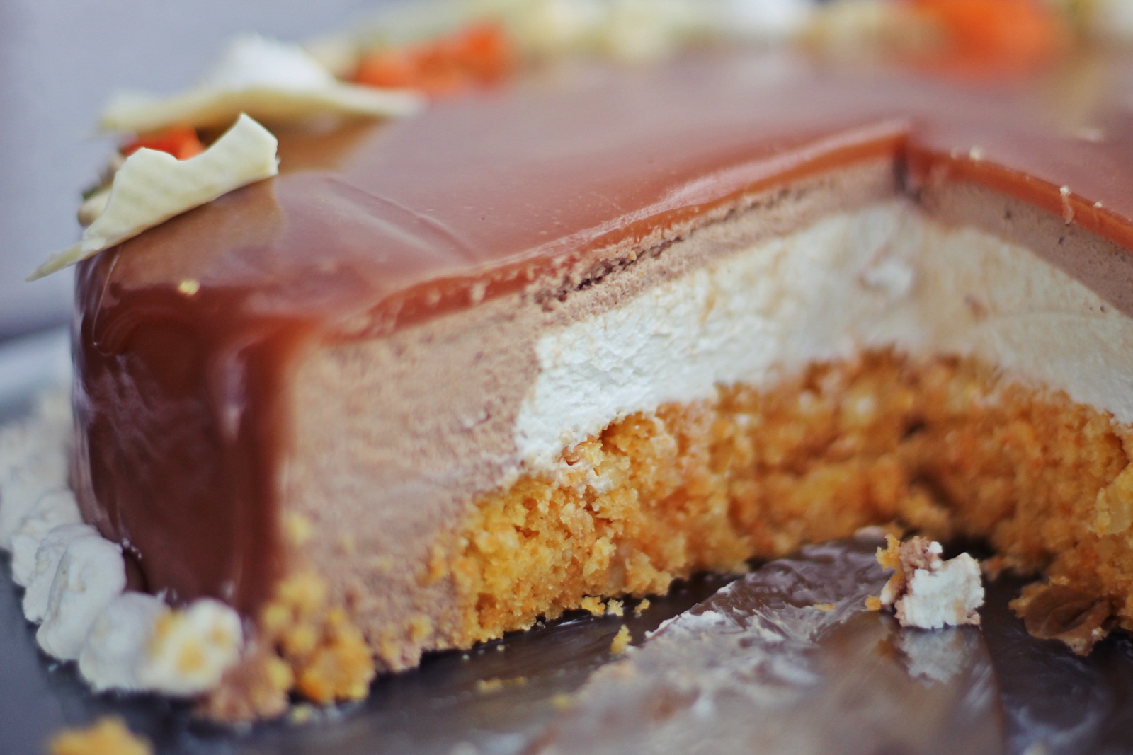 Za svoju kreaciju odabrala sam samo par komponenata jer sam radila veću verziju, a i malo pojednostavila recept za sve vas koji odlučite probati. Biskvit, nugat mousse krema i karamel preljev su po Aninom receptu a krem sir je moj dodatak koji savršeno paše uz tortu od mrkve.