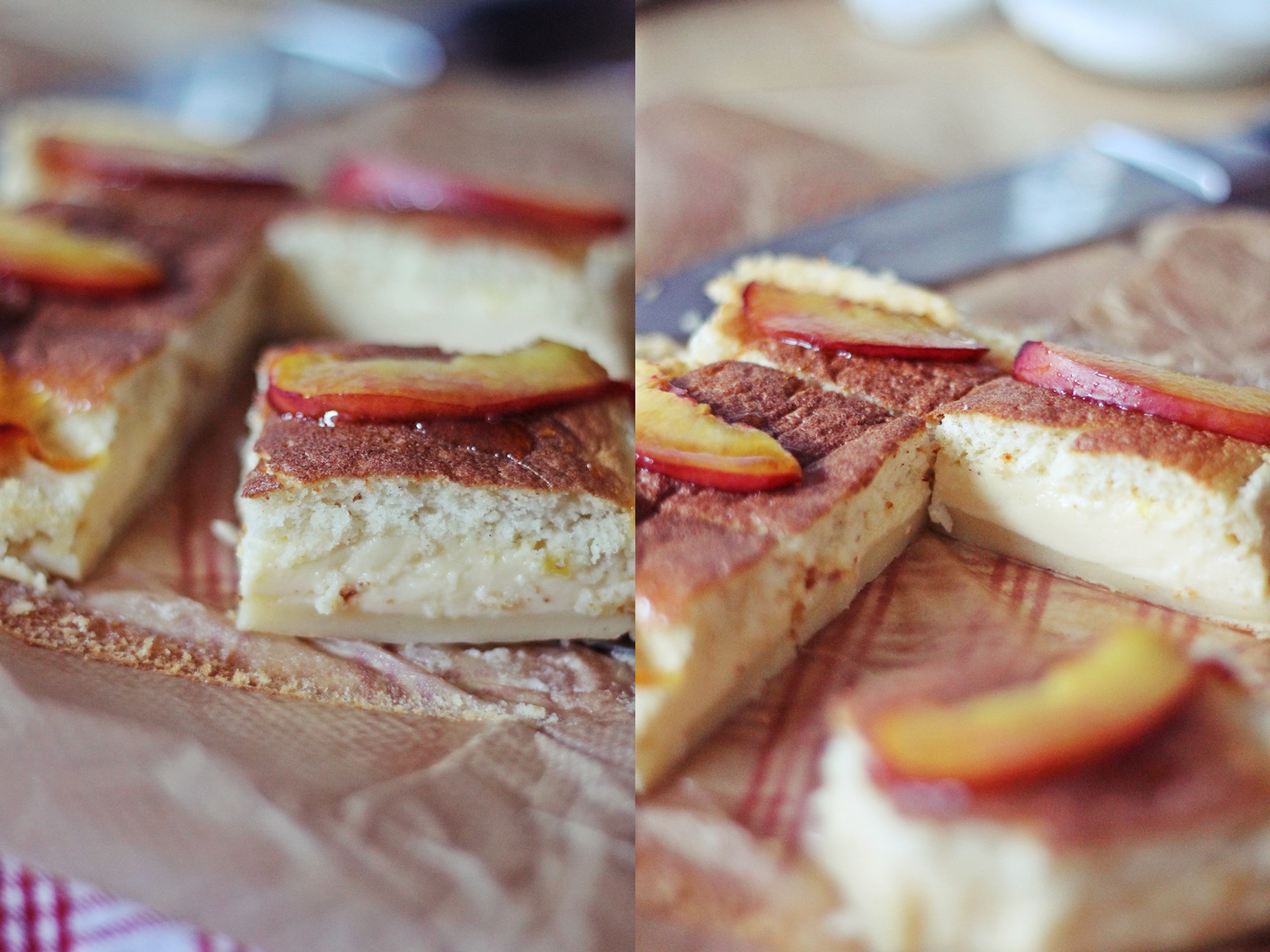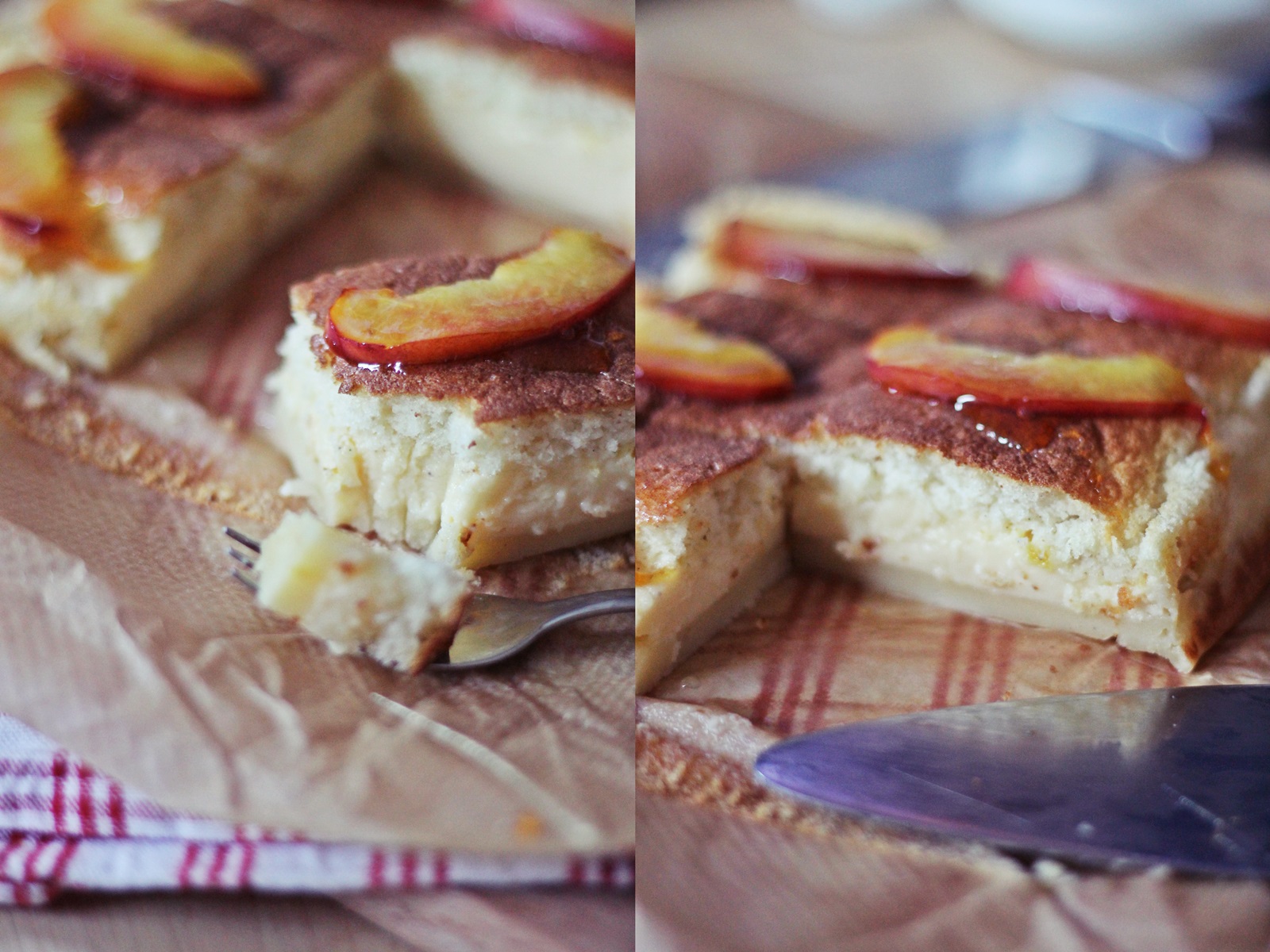 Odlučila sam se za mali dodatak pa sam na cca 50 g karameliziranog šećere bacila par komada narezane nektarine da se malo zapeku i poslužila sa hladnim kolačem 🙂