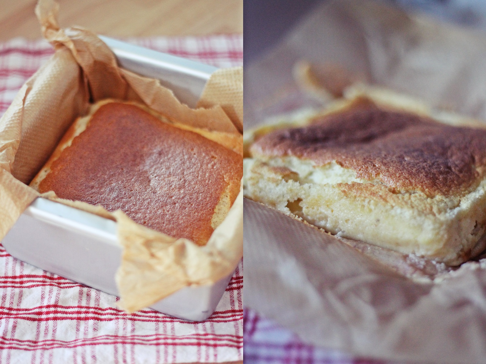 Bilo bi najidealnije kad bi pekli u vatrostalnoj posudi koju ste lagano premazali maslacem. Ja sam koristila metalni četvrtati kalup koji sam nabavila kod Cukermanija te sam ga premazala maslacem i oblozila papirom za pečenje da ga kasnije lakše izvadim.