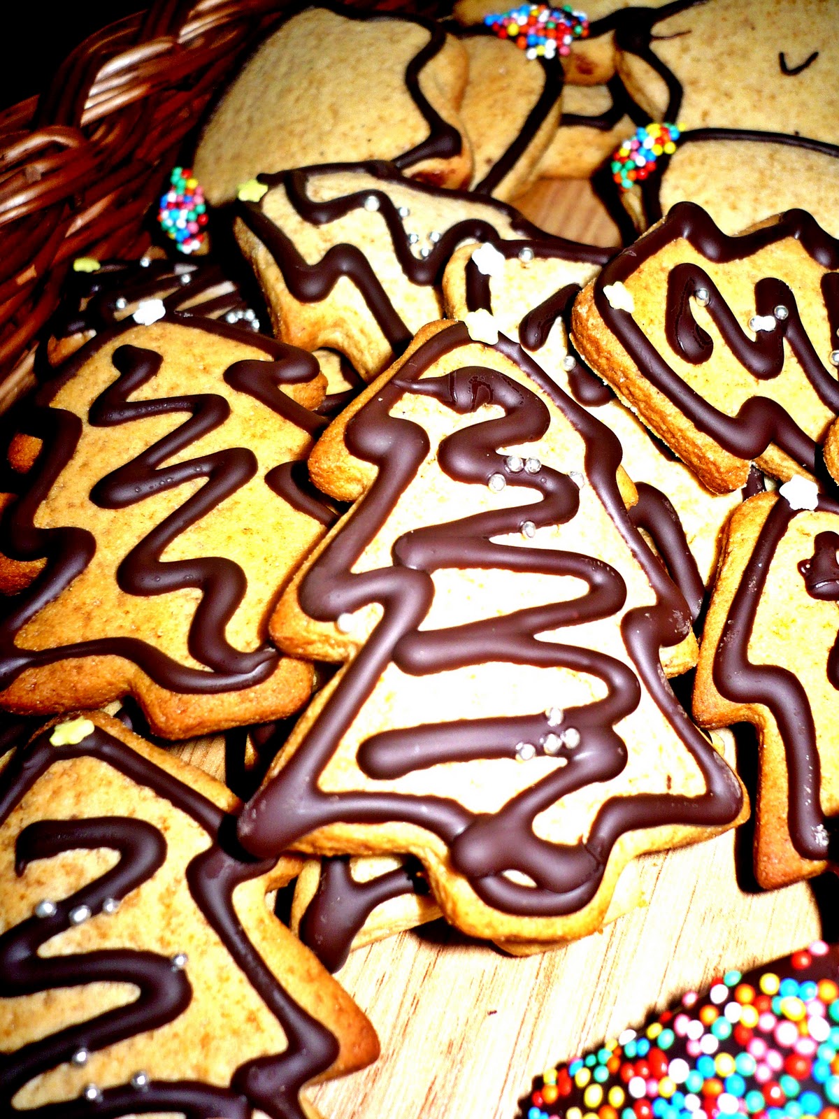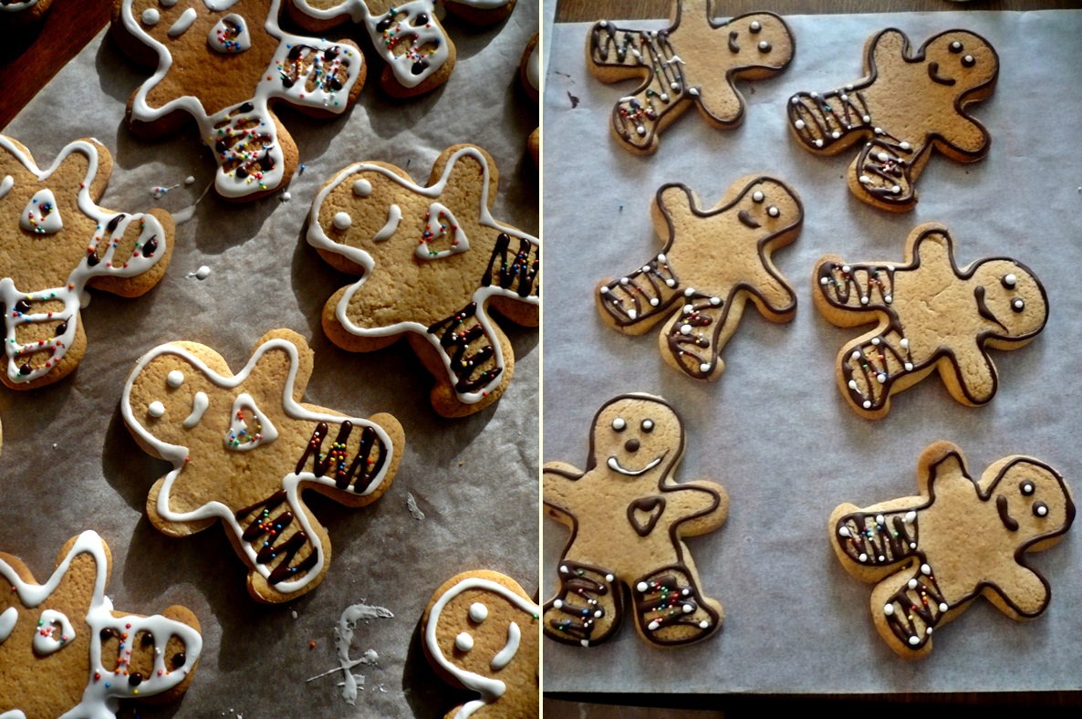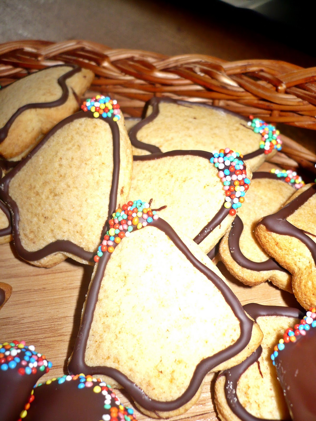 When they are baked, let them cool and thean you can decorate them. I used chocolate, royal icing and colored sugar 🙂