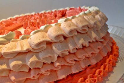 Već dugo želim isprobati ovu tehniku ukrašavanja 🙂 Ruffles ili volani sam radila već prije na svojoj rođendanskoj torti i prefinoj limun tortici ali ovdje je u malo drukčijem obliku! A “ombre” je f