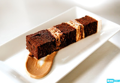 | Devil’s Food Cake with Whipped Caramelia Ganache and Almond Dacquoise |