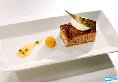 | Brown Butter Hazelnut Cake, Lemongrass Stalk Infused Cream and Passion Fruit |