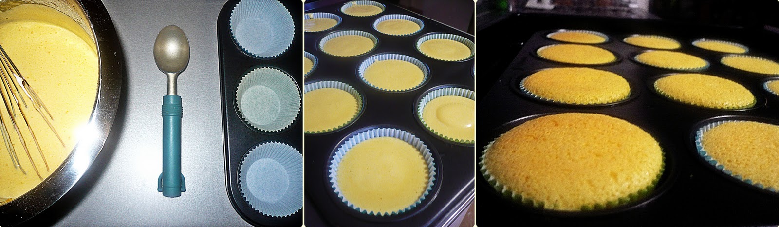 Zagrejati pećnicu na 150 stepeni. U praznine na muffin protvan staviti papirne korpice (meni je izašlo 12 tortica). U veliki protvan sipati vrelu vodu (oko 1,5 l) pa je staviti u pećnicu da se ne hladi.