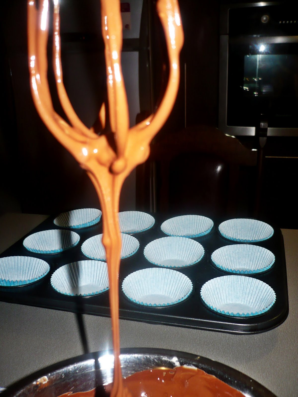 Za to vrijeme zagrijati pećnicu na 175 stupnjeva! Na pari otopiti čokoladu i staviti sastrane 5 minuta da se malo ohladi. Nakon toga umiješati kikiriki maslac u to i dobro sjediniti! Nakon što se to malo ohladilo umiješati slatko vrhnje i i miksati dok ne bude izgledalo kao na slici, ne predugo 🙂